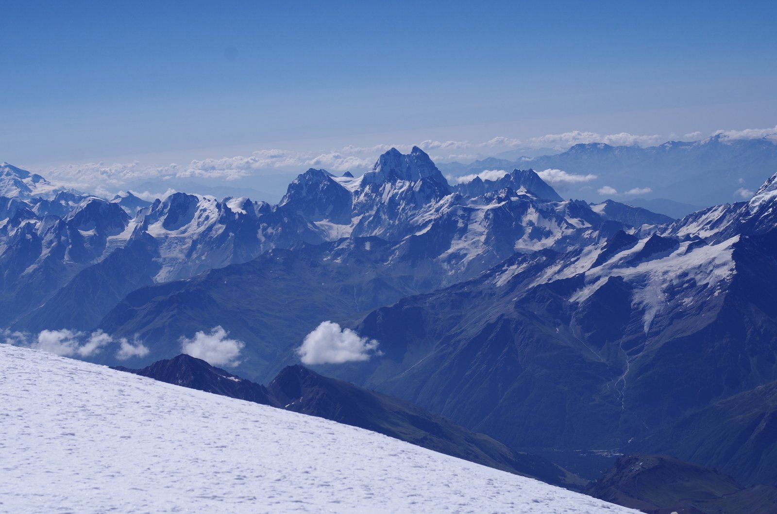 Вид с Восточной вершины Эльбруса на Ушбу
