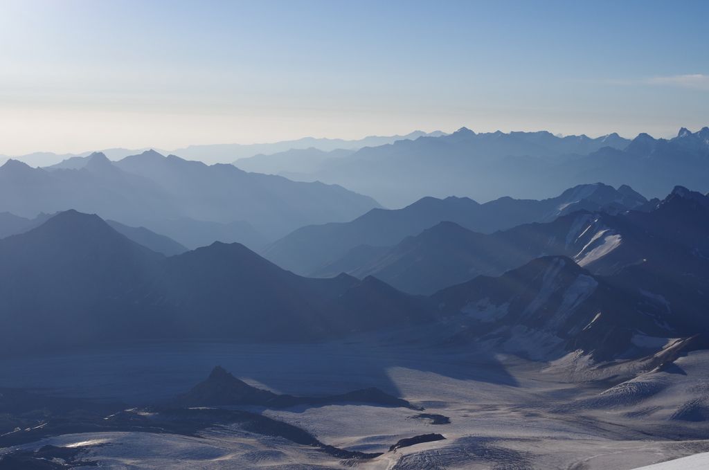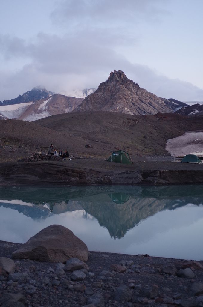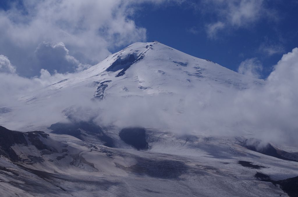 Изначально маршрут планировался достаточно напряженным, но в график уложиться оптимально (оставив три чистых дня на Эльбрус) у нас не получилось из-за послеобеденных дождей. В итоге на Эльбрус осталось ровно двое суток. Сходили в первый день акклиматизацию аж до 4900. Время, силы и погода позволяли идти выше, но решили не рвать, а спокойно подняться на сл.день. Не вышло, погода подвела. А т.к. времени ждать не было, ушли вниз. Обидно, ведь трое суток до этого погода стояла настолько идеальная, что Эльбрус виден был круглосуточно и ни единого облачка над ним. Редчайший случай.
