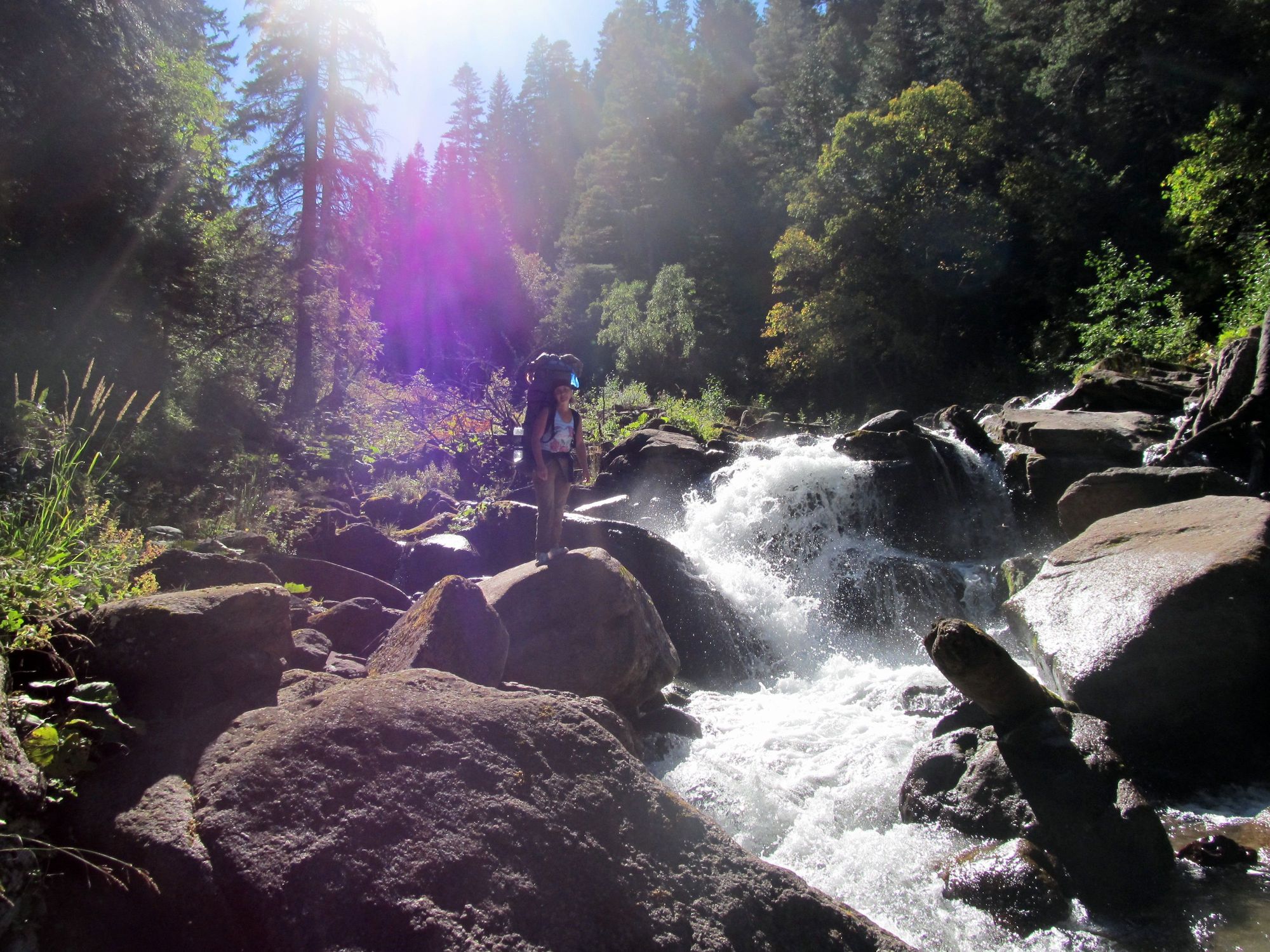 С 28.08 по 1.09 прогулялись по маршруту п.Уруп-Рудник-"Урупский каньон"-Загеданские озера-верховья р.Шантацара-п.Рожкао.Планировали подняться на вершину г.Уруп,но из за дефицита времени(больше времени ушло на прохождение каньона) ограничились осмотром подвершинного озера(северного) и скатились по Шантацарскому хр. к Б.Лабе.