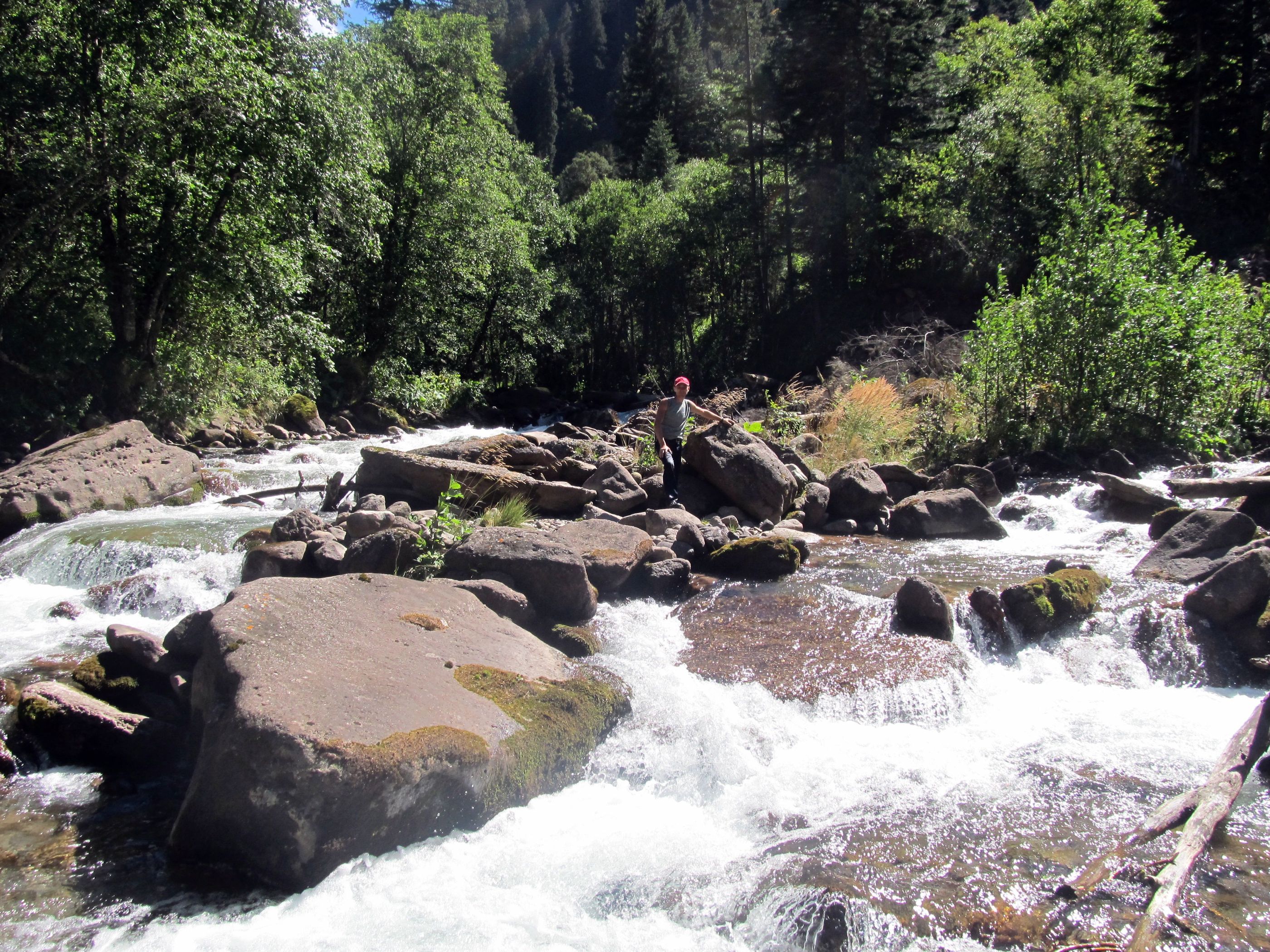 после слияния,уклон резко возрастает-больше порогов и водопадов,Уруп менее полноводен но более стремителен...
