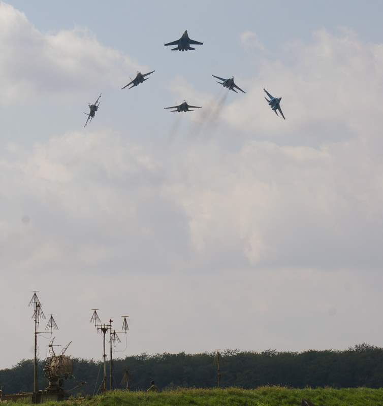 Прошли тридцати минутные показательные выступления на родине капитана Бахчиванджи http://ru.wikipedia.org/wiki/%C1%E0%F5% ... 5%E2%E8%F7 в штатном режиме. Полет выполняла липецкая группа «Соколы России» http://ru.wikipedia.org/wiki/%D1%EE%EA% ... 1%F1%E8%E8 под руководством генерала Харчевского http://ru.wikipedia.org/wiki/%D5%E0%F0% ... 5%E2%E8%F7. Также в показе приняла участие группа «Бриньковские соколы». Это группа черных бакланов http://ru.wikipedia.org/wiki/%C1%EE%EB% ... A%EB%E0%ED , прошедшая над местом показа, в красивом, ровном, плотном боевом порядке, в разгар представления. Вызвала не меньший интерес у публики.