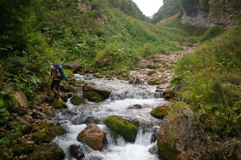 Хочу предосттеречь тех, кто выходит через балку глубокая. Воды в устье достаточно, но она резко заканчивается, примерно у Мезмайской пещеры.