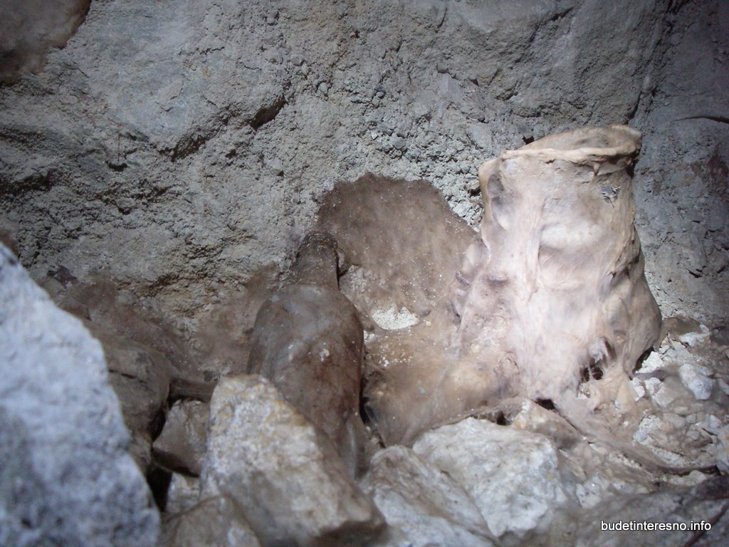 Еще в штольне поразила разросшаяся плесень по полу и перекидывающаяся на стену(она в другом ответвтлении на пути к большому кальцитовому залу), у нее четки видны "прожилки" как у листьев, а после освещения ее фонарем и выключения света эти продилки светятся как будто фосфорные. Фото, увы, нет. Но было жутковато, словно "чужой" какой-то находится рядом.
