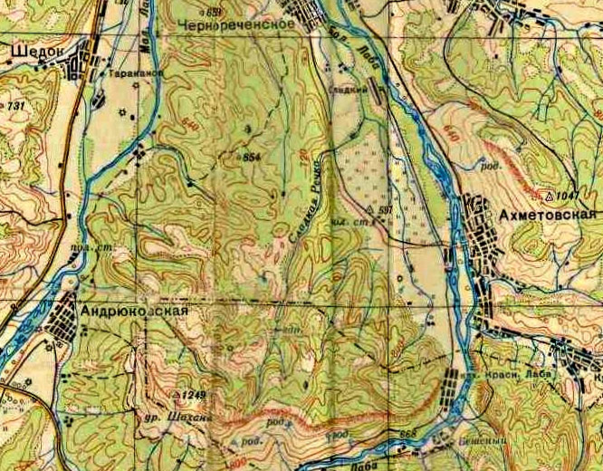 Во всех перечисленных местах я бывал неоднократно, поэтому меня в первую очередь интересовала Сладкая Речка. И вот почему. Разбирая старинные карты, на наткнулся на знак "вдп" на упомянутой речке. И что характерно, ни на одной другой карте этого значка не было:
